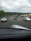 Kwam met een enorme rookwolk de pits in en stopt aan het begin ervan. Reed even later verder tot hier. Linksonder zie je beginnende vlammen. Brandblusser die erbij werd gehaald deed het eerst niet! De GIGANTISCHE spoiler zat slechts met tape aan elkaar!!