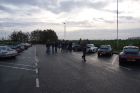 Binnen in Porsche Centrum Gelderland, verzamelen voor vertrek