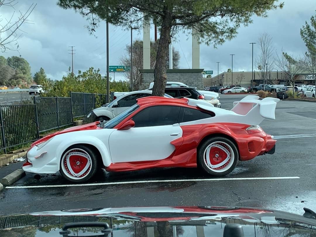 Vind het ook wel aardig bedacht. Alleen zo'n GT3 voorbumper vind ik niet goed passen bij de wat klassiekere lijnen van een shooting brake.
