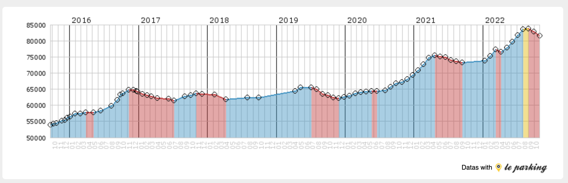 In 2017, 2018,2019,2020 en 2022 zie je dat het na de zomer even naar beneden gaat en dan weer bergop, enkel in 2021 ging het steeds bergop. Het is normaal dat in de herfst en winter minder gekocht wordt, net als met motorfietsen.