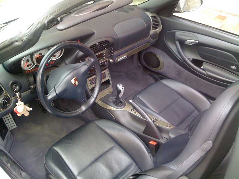 leder met sportstoelen en zetelverwarming (donkerblauw), sportpedalen porsche, cdr 23, PSM, windscherm, 17" velgen met goede banden, zilver metaal met donkerblauwe softtop, motor sound package, witte wijzerplaten, blauwe softtop, opbergbox, rolbeugel in silver, cd opbergvak, softop met vaste ruit (dus niet met de plastic).....