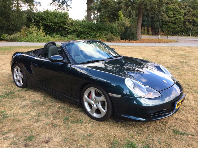 Mijn Boxster S van 2004 is te koop. Ik heb hem zelf 3,5 jaar geleden gekocht, het is een Nederlandse auto, hij heeft nu 89000 km gelopen. De kleur is donkergroen pareleffect, hij heeft 18 inch turbo wielen, zwart leren interieur en een zwart dashboard, Porsche hifi systeem en CDR 32, klasse 3 alarm, is handgeschakeld. Laatste modeljaar van de 986, met glazen achterruit. Dit modeljaar had gewijzigde voor-en achterbumpers. De eerste eigenaar heeft er bijpassende GT3 sideskirts en een KW schroefset op gezet. De Boxster stuurt en rijdt strak en fijn, maar hij is niet overdreven laag. Nette auto!