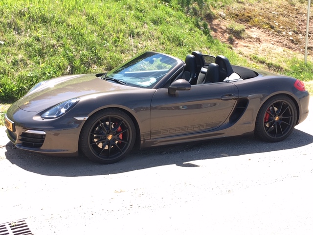 Te koop, mijn Boxster S van 6-2012, handgeschakeld in de kleur antraciet bruin.