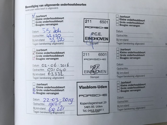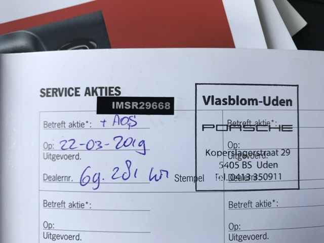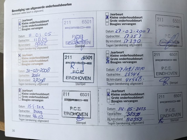 Auto porsche center Eindhoven geleverd en altijd onderhouden toen ik de 996 heb gekocht bij zuffenhaus in Hilversum heb ik de autoresto ims ed eruit laten halen en alles vervangen door Paul vlasblom die het anders uitvoerd en een keramisch lager van ln engineering Toepast waar ik een goed gevoel bij heb.