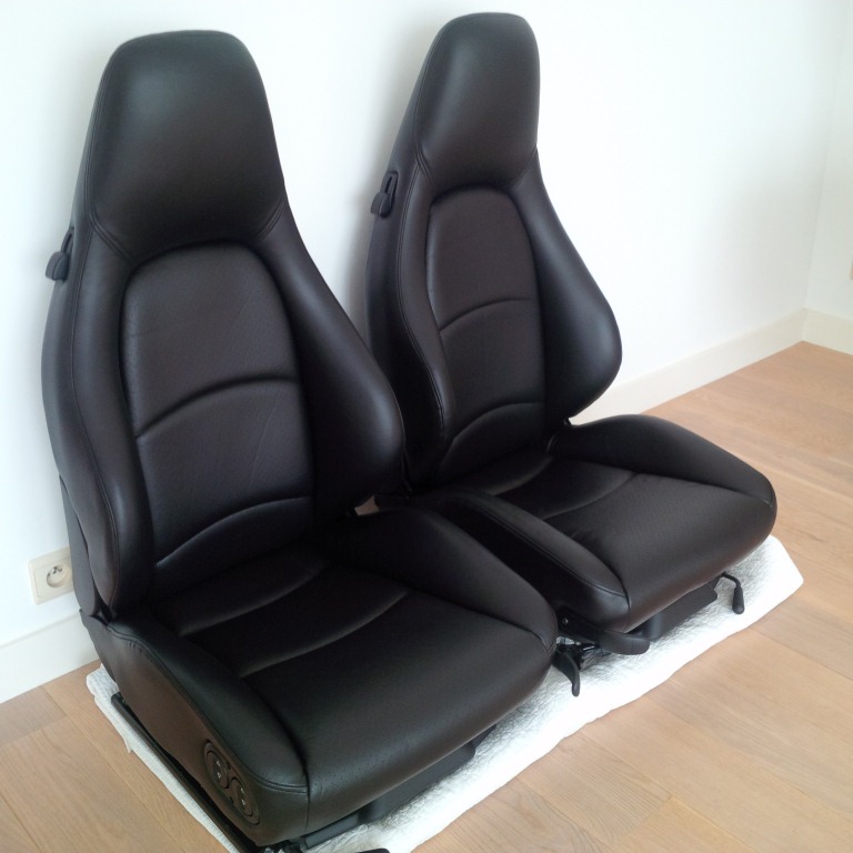 2 elektrische zwarte lederen Carrera Turbo Recaro voorstoelen voor 993.