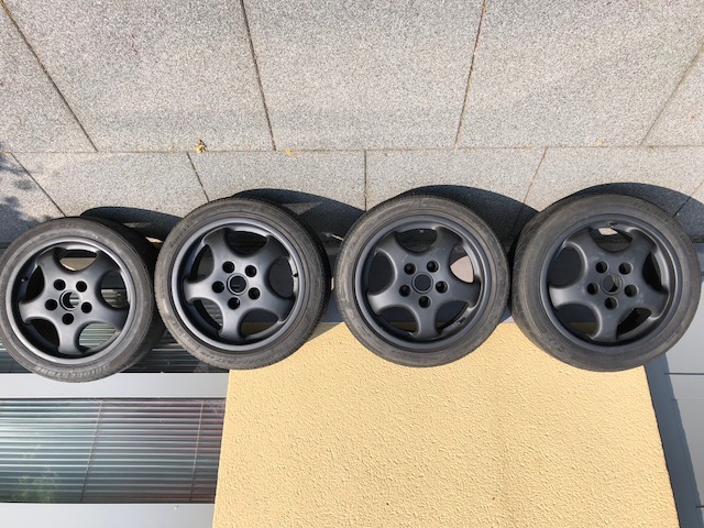 de velgen zijn 8" ET52 en 9" ET55, passen perfect op een normale 964 zonder aanpassen van de spatborden