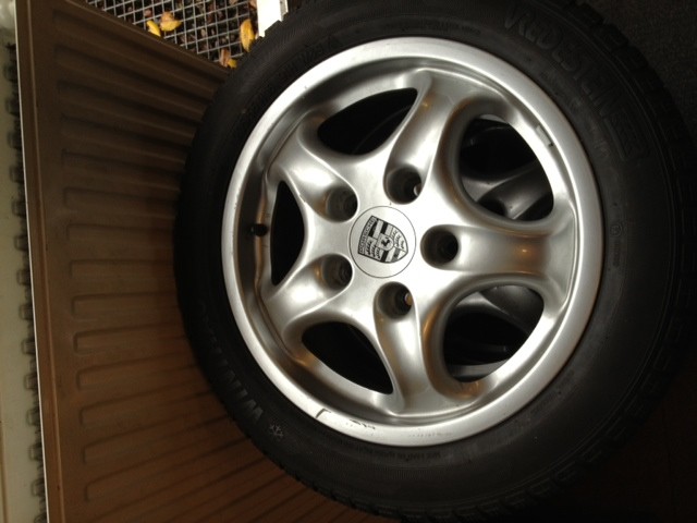 Te koop, Set nette 16" velgen voor 993 met winterbanden. Banden: 2x Vredestein Wintrac 205/55/16 4.5mm 9Jx16ET70 2x Continental Winter Contact 205/55/16 6.5mm 7Jx16ET55