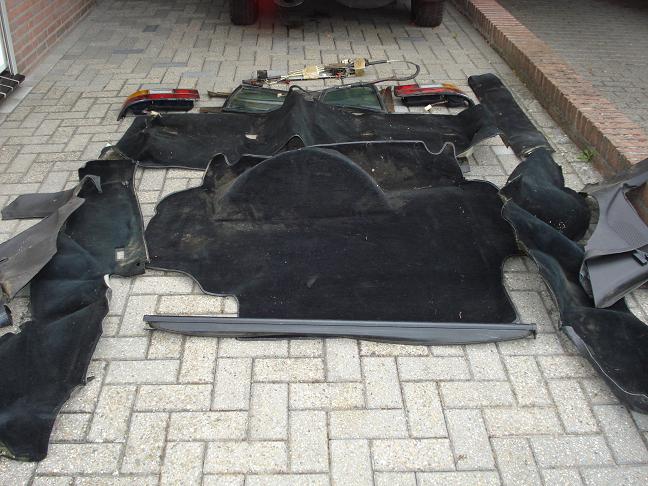 tegen geringe vergoeding af te halen: diverse bekledingdelen uit een '85er, zie foto. De achterlichten en de rolhoes zijn al weg. Na een poetsbeurt zijn alle delen z.g.a.n.!!