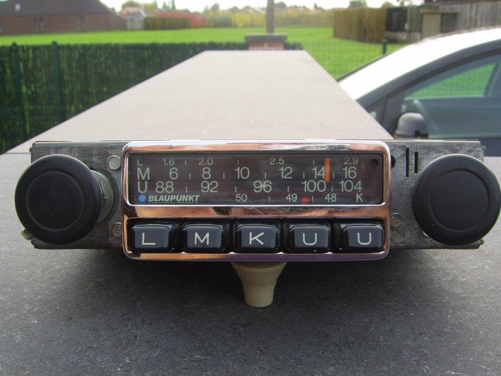 Te Koop: een 1972 Blaupunkt Frankfurt radio met het klein chroom frontje en zwarte knoppen.