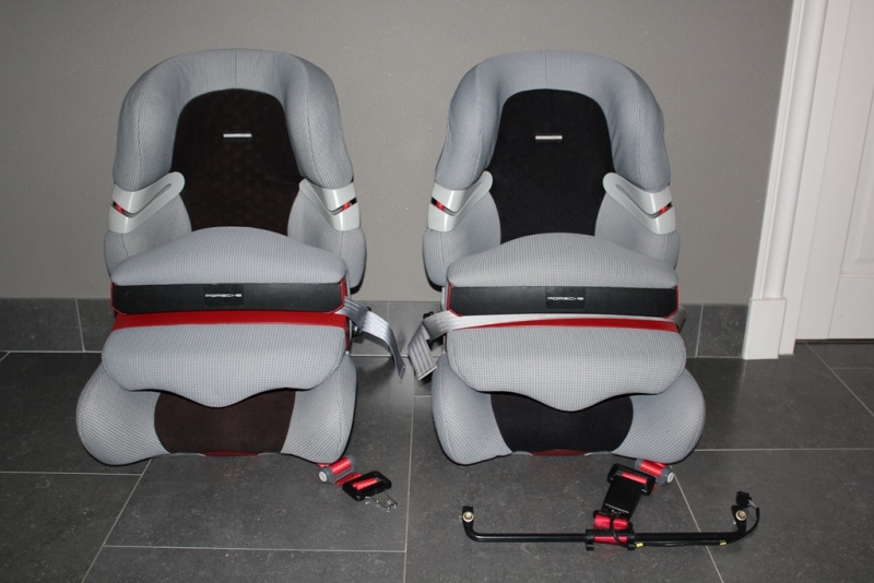 2 Originele Porsche kinderzitjes met isofix bevestiging en extra beugel voor uitschakelen van airbag op de voorstoel. Deze kinderzitjes zijn geschikt vanaf 1 jaar (met speciale voorzetsteun en extra gordel) tot en met 8 jaar. Géén extra kinderzitje nodig bij het groter worden omdat de rugleuning versteld kan worden in hoogte. Fantastische stoelen die eruit zien als nieuw! Prijs 175,- euro p/stuk + € 50,- euro voor de beugel.