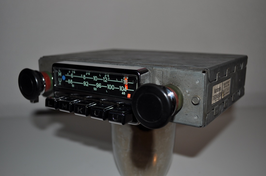 Zeer mooie en zeldzame (kom je niet veel tegen) Blaupunkt Karlsruhe voor 911 F, met chromen toetsen (LMKUU) in zeer goede staat en met klein chromen frontje rond de zenderschaal, wordt geleverd met stekkertje voor de speakers.