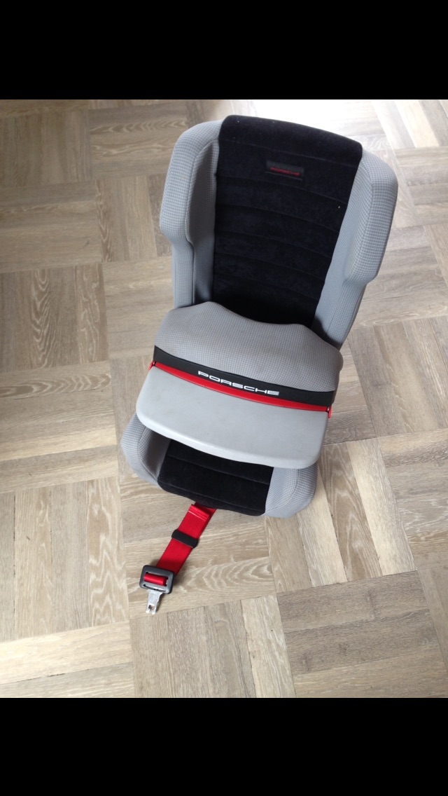 Steeds zeldzamer en lastiger te vinden. Door de versmalde onderkant hét best passende stoeltje voor achterin de Porsche 911 3.2 / 964. Kan met de standaard (2punts) heupgordel gebruikt worden.