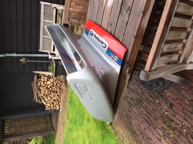 Hij ligt al jaren in mijn garage en doe er niets meer mee. Een nette polyester RS 3.8 achterklep, afkomstig van mijn 964 Cup.