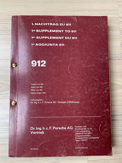 Zeldzame 912 nachtrag zu 911 manual editie 1965In zeer goede staat. Richtprijs 350 euro