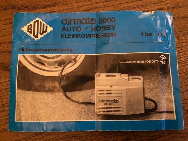 Ter overname aangeboden: zgan BDW (Bayerische Druckguss-Werk) Airmate 8000 kompressor zoals die als standaarduitrusting bij de 911 Carrera 3.2 zat tot en met 1985. Perfecte staat incl. originele gebruiksaanwijzing. Prijsindicatie 100 euro. Groet, Hans (nu 993 4S)