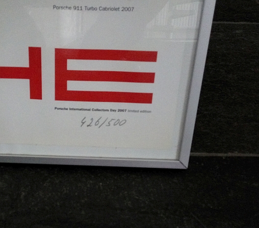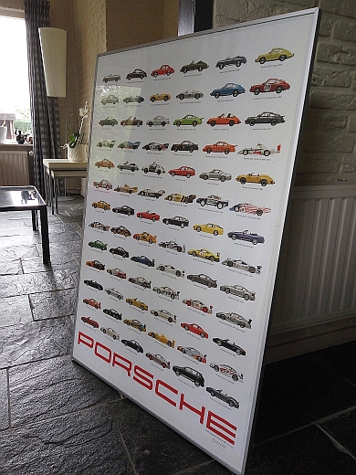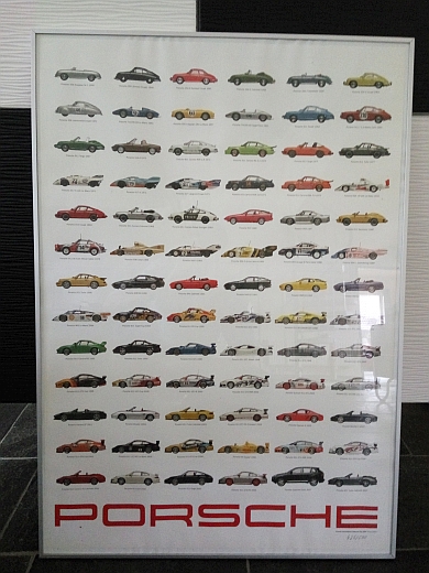 Porsche International Collectors Day 2007 Limited Edition poster. Afgebeeld ieder productie-model tussen 1948 en 2007. Gelimiteerd exemplaar 426 van 500 wereldwijd. Altijd ingeframed, nooit zon op geweest. Afm. 98 x 68 cm. Matte aluminium lijst,glazen plaat. Alleen afhalen gezien kwetsbaarheid. Prijs 115 Euro.