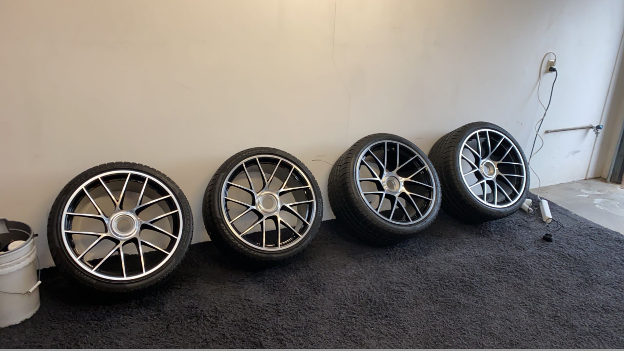 Te koop voor een vriend die niet op het forum zit: zeer mooie onbeschadigde winterset voor Porsche 991 met centrale wielmoer / centerlock.