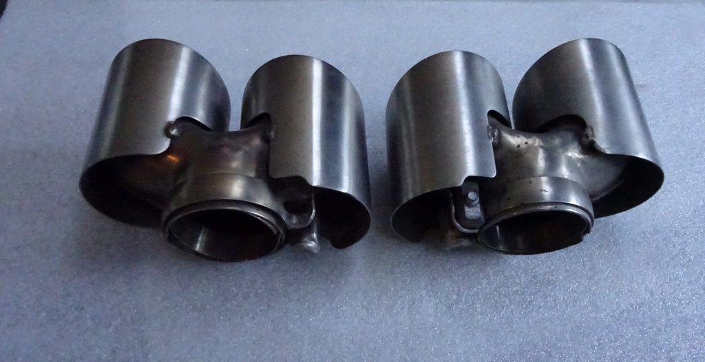Twee nette uitlaat-eindstukken van een 997 Carrera S
