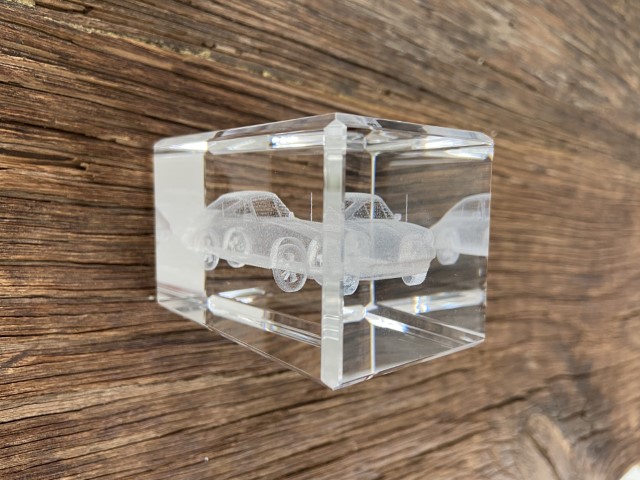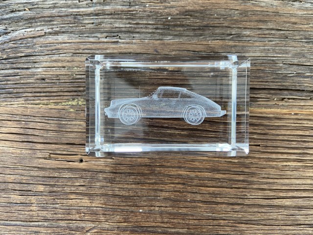 Glazen presse-papier of gewoon prachtig sieraad met 3D gravure van klassieke 911