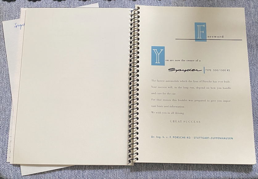 Bericht Re: Veiling #7: Driver's Manual Porsche Spyder Type 550/1500