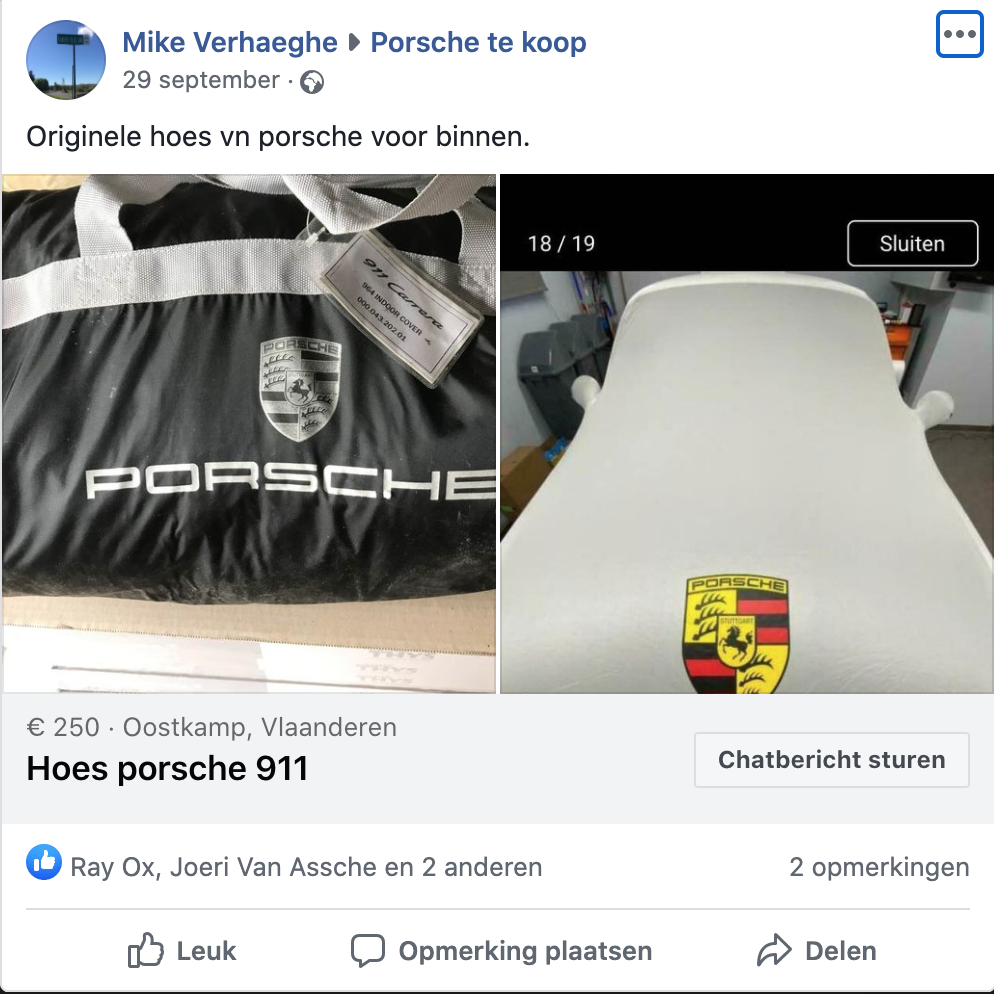 Ik zoek voor mijn 964 een hoes voor binnen. Auto staat altijd in de garage, maar wil toch wat betere bescherming tegen stof en vuil. Iemand nog eentje liggen misschien?