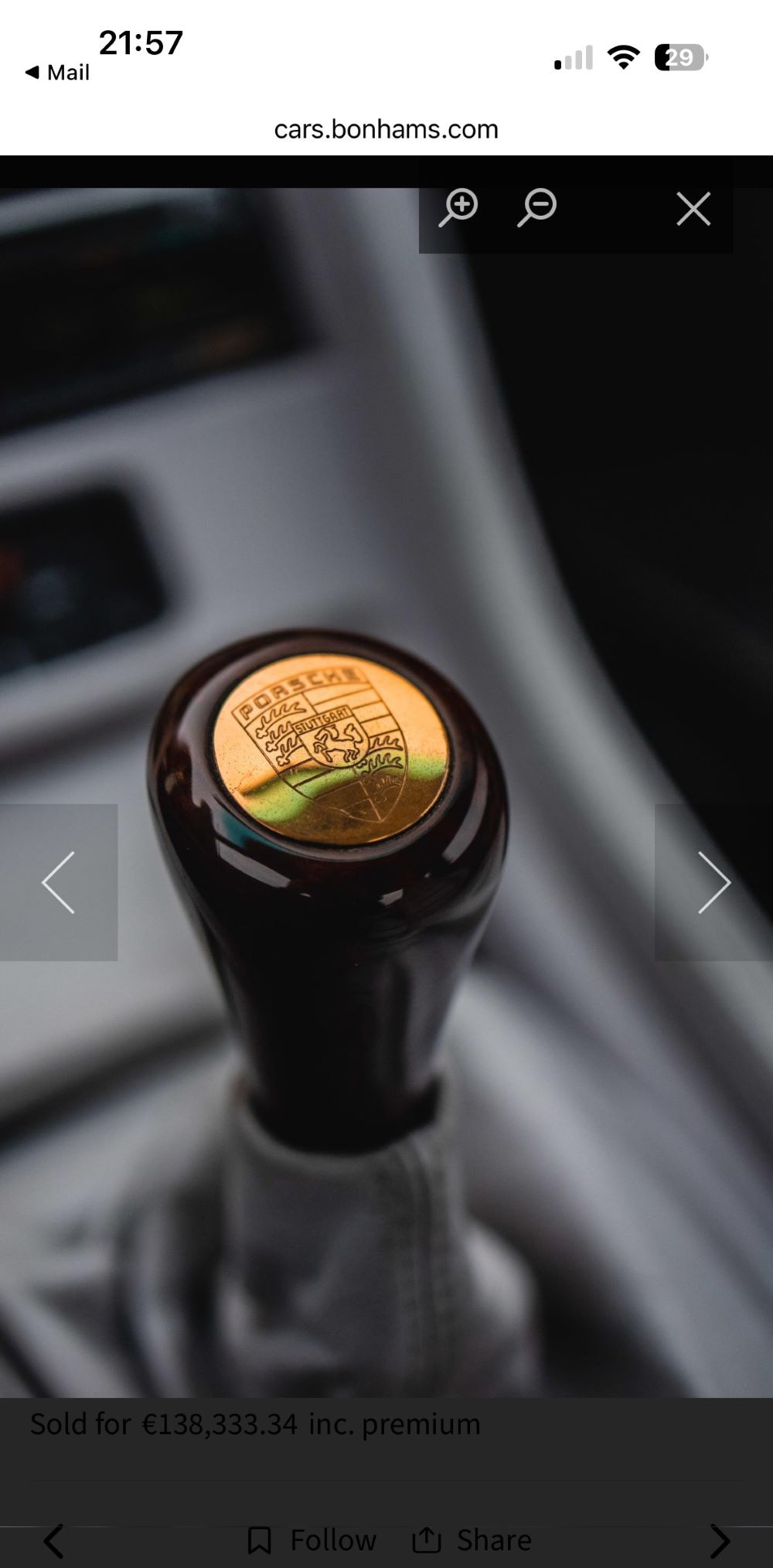 Mijn 928GTS heeft origineel een wortelnoten schakelpook. Alleen zit er geen embleem meer op. Op de foto kun je zien hoe het zou moeten. Weet iemand waar ik zo'n embleem zou kunnen vinden?