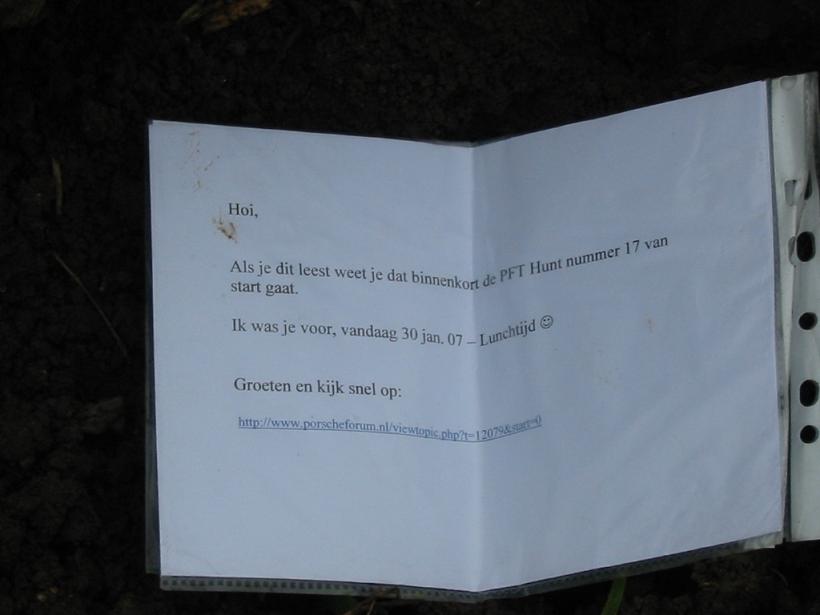 Al snel vond ik daar 'n ander pakketje, reeds eerder gevonden door Gerhard bij het zoeken naar 'n goed ondekomen voor de 16de PFT trofee.