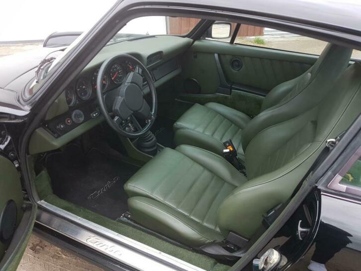 Porsche 930 Turbo 1978 kleur lakzwart met [een unieke kleur] groen leder
