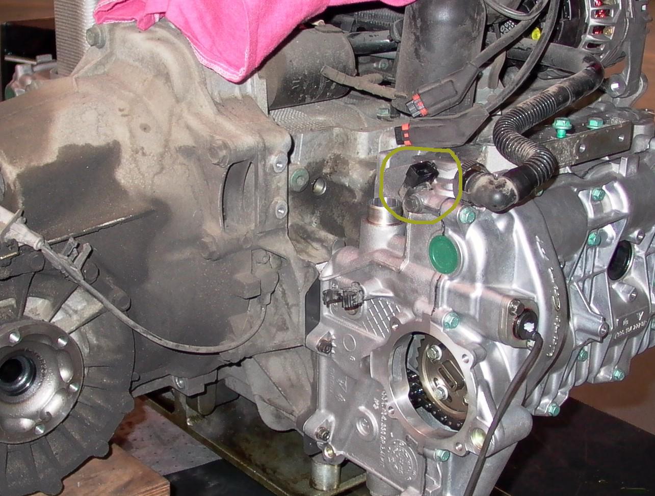 Op de foto waarop je de achterkant van het 3.6L blok ziet, kun je zien dat daar ook geen plek is voor de sensor zoals je die ziet op de 3.4L foto. Tenmiste daar lijkt het op..