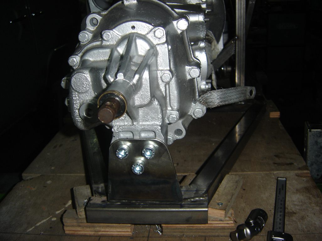 Goed als de onderkant is gemaakt dan kan het chassis naar boven toe gemaakt worden. De drager voor de bak aan de achterkant staat iets naar boven om de bak goed te ondersteunen en de vooras staat 5 graden gekanteld om caster te compenseren. Als het basis chassis (de doos) gemaakt is dan moet je bepalen hoe hoog de bak in het chassis moet komen te hangen. Aan gezien we een pendelas bak plaatsen en op 0 camber ideaal rijden is kunnen we nu bepalen hoe hoog de bak in het chassis moet komen. Mijn berekening gaat uit van 10 cm rijhoogte. Nu is ook het moment gekomen om de kale motor aan de bak te hangen en te kijken of alles kan passen wat er later aan gebouwd moet worden. De uitlaten zijn maatgevend om de achterste chassissteunen vast te kunnen maken.