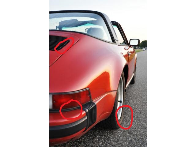 Misschien hebben we het over iets anders? Ik bedoel het rubbertje tussen achterwiel en achterlicht. Dat is toch duidelijk niet zwart zoals de drie dingen die in jouw afbeelding omcirkeld zijn? Aan de linkerkant is het overigens wel zwart, maar rechts volgens mij niet. Maar goed, wat maakt mij het ook uit.