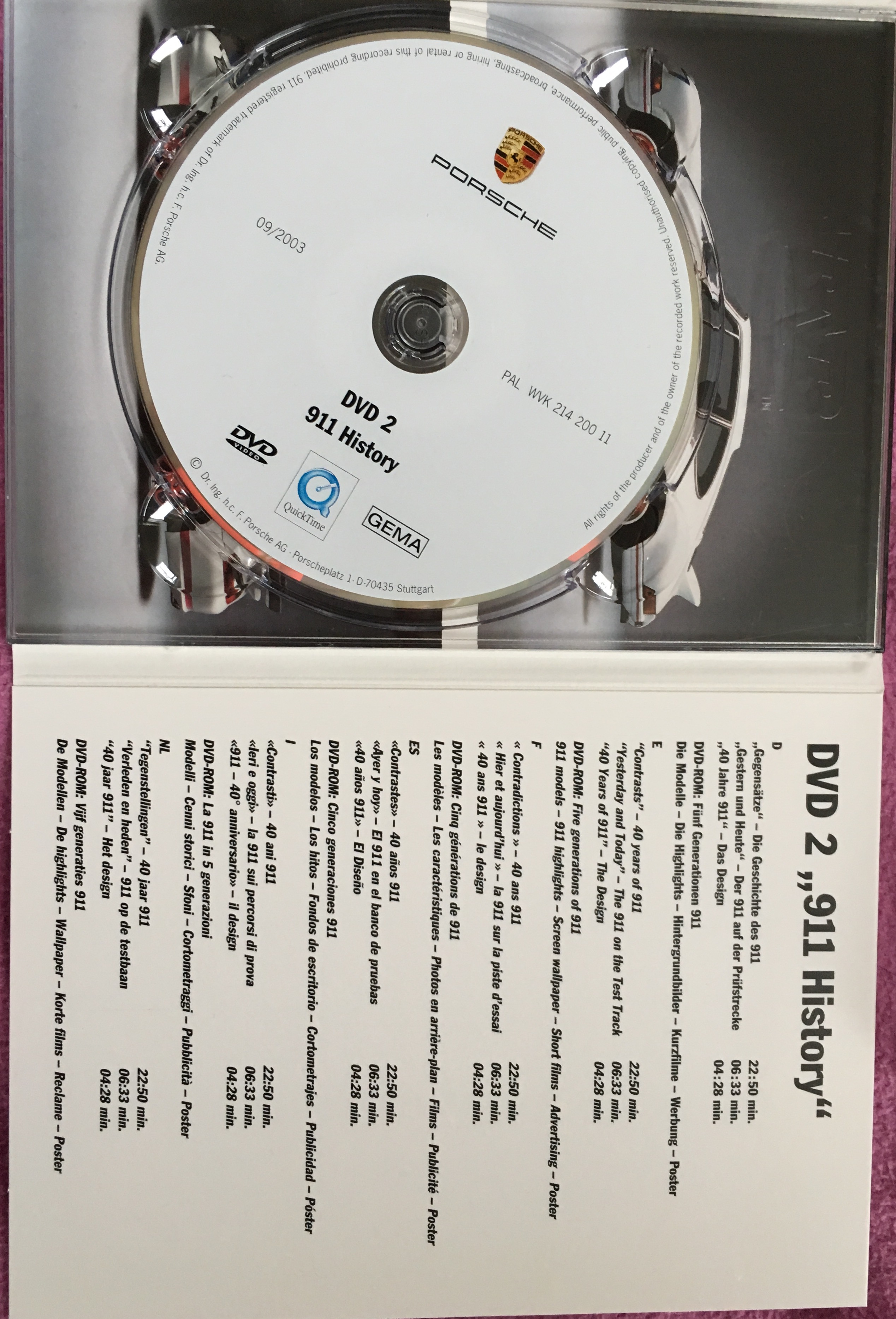 Voor de verzamelaar, DVD set (2DVD) met volop 911 historie, techniek en design. Op DVD2 tevens een CD rom aanwezig met filmpjes en wallpapers.