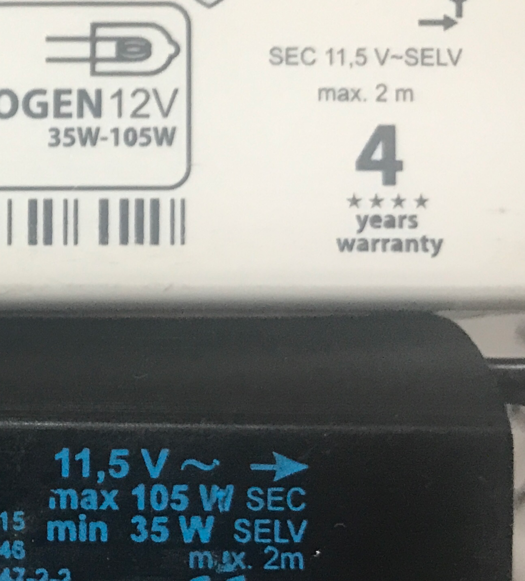 Misschien een Osram electronic trafo kopen. deze eerst testen of er 12volt op de secundaire zijde staat.