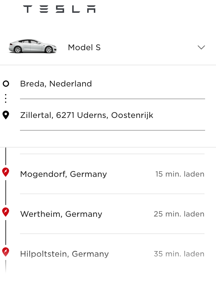 Ehm, dat is toch juist wat Tesla via live Google Maps doet? Uitrekenen waar je het beste kunt laden, hoe lang je moet laden en waar je langs moet rijden om het snelste op de bestemming te komen zonder files, allemaal real live, dus ook tijdens de rit wordt dit steeds bekeken.