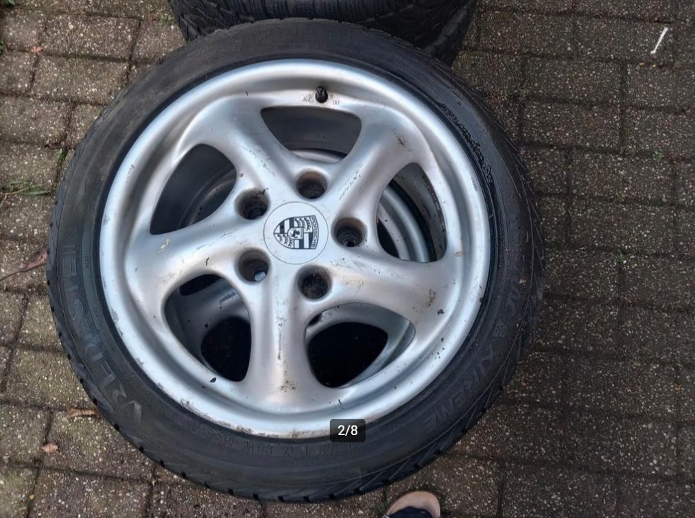 Setje velgen te koop 17x7 en 17x8.5 2 stuks 996.382.126.05 en 2 stuks 996.382.124.00. ET50 achter en ET55 voor