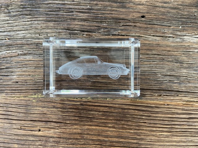 Glazen presse-papier of gewoon prachtig sieraad met 3D gravure van klassieke 911