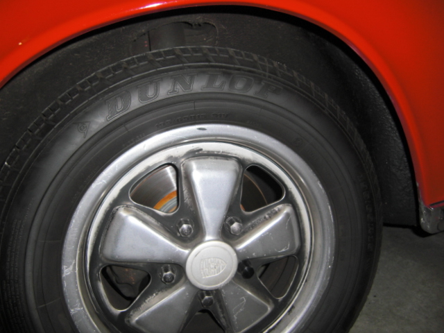 ik vermoed dat je reserve-velg een zgn 'deep 6' is (6J) en die onder je auto de 'platte' Fuchs velg (5,5J?). Ik dacht dat de deep-6 tm 1971 werd geleverd op de E (optie) en S.