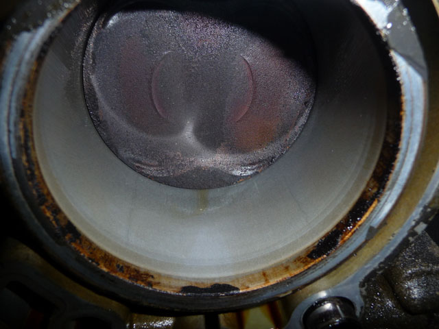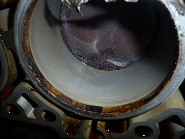 Als er alleen een scheur in de wand zit (vergelijkbaar met een lekke koppakking eigenlijk) dan gaat er bij de compressieslag wellicht een heel klein beetje olie door de scheur maar dat mag geen naam hebben. Gebeurt bij een lekke koppakking namelijk ook niet :idea: Omdat de olie "onder" de zuigerveer blijft en niet in de compressie ruimte komt.