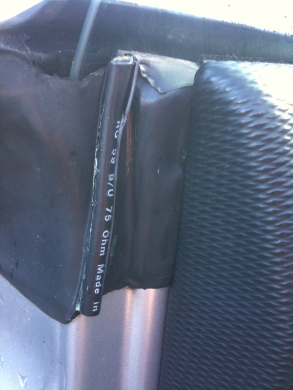 Dus aan een kant, de rubberen strip wat naar voren buigen...en andere kant een coax antenne kabel? :-)